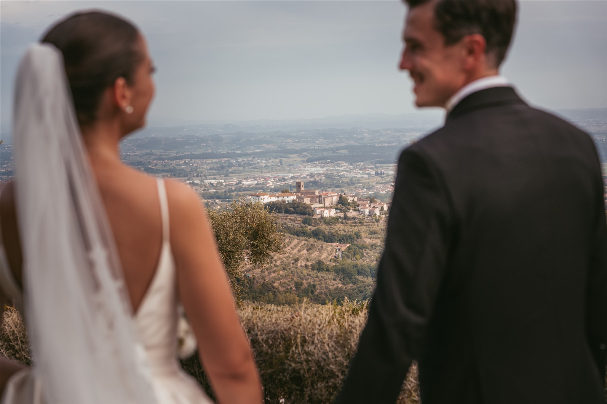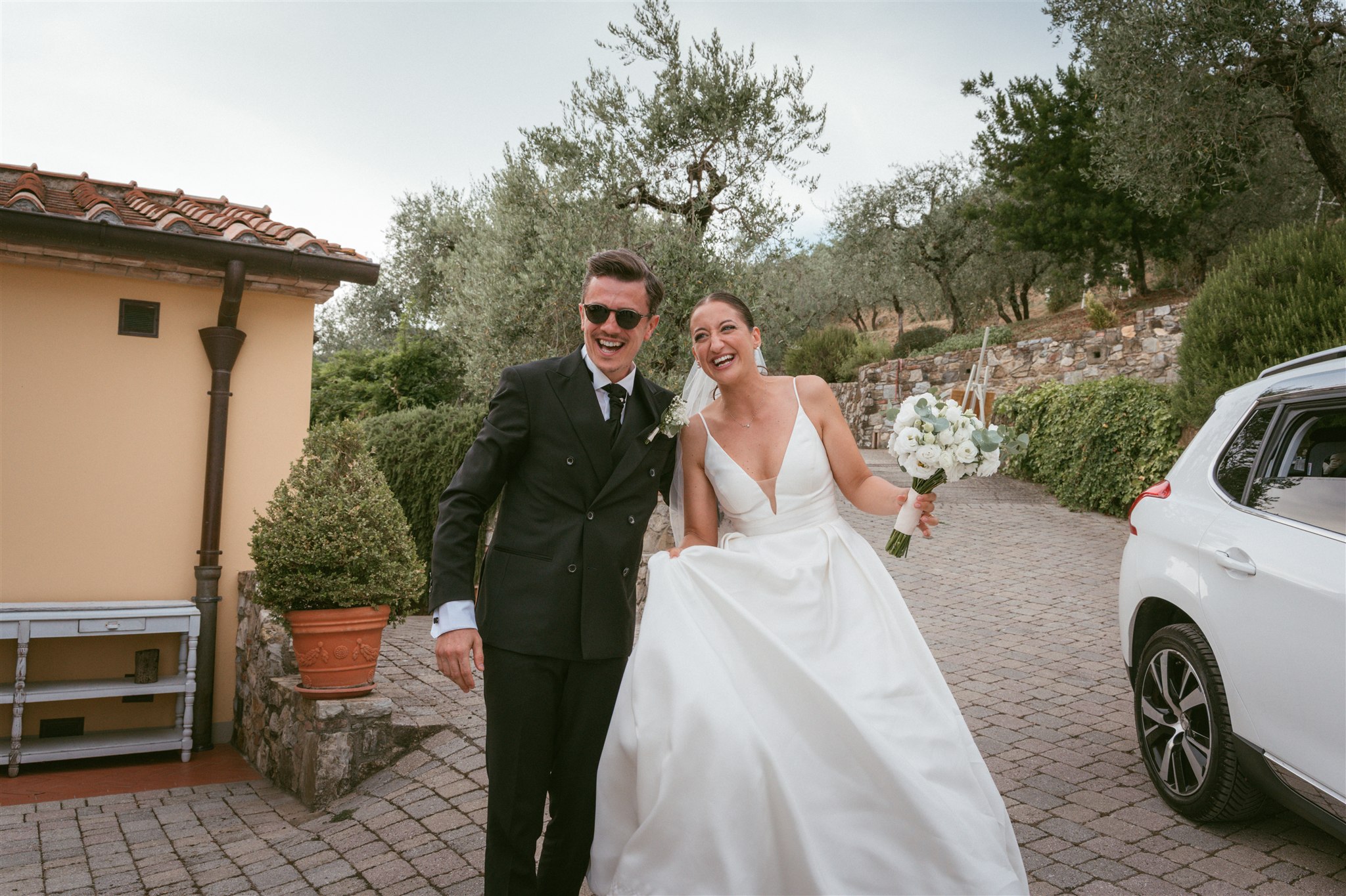 Dopo la cerimonia, i festeggiamenti sono proseguiti presso Poggio Tondo, una location immersa nel verde delle colline della Valdinievole, circondata da giardini, terrazze panoramiche e da quell’atmosfera di campagna toscana che rende ogni ricevimento intimo, suggestivo e profondamente accogliente. La struttura è nota proprio per i suoi spazi aperti, la vista sulla valle, l’attenzione ai dettagli e la possibilità di vivere il matrimonio in un contesto autentico e curato.