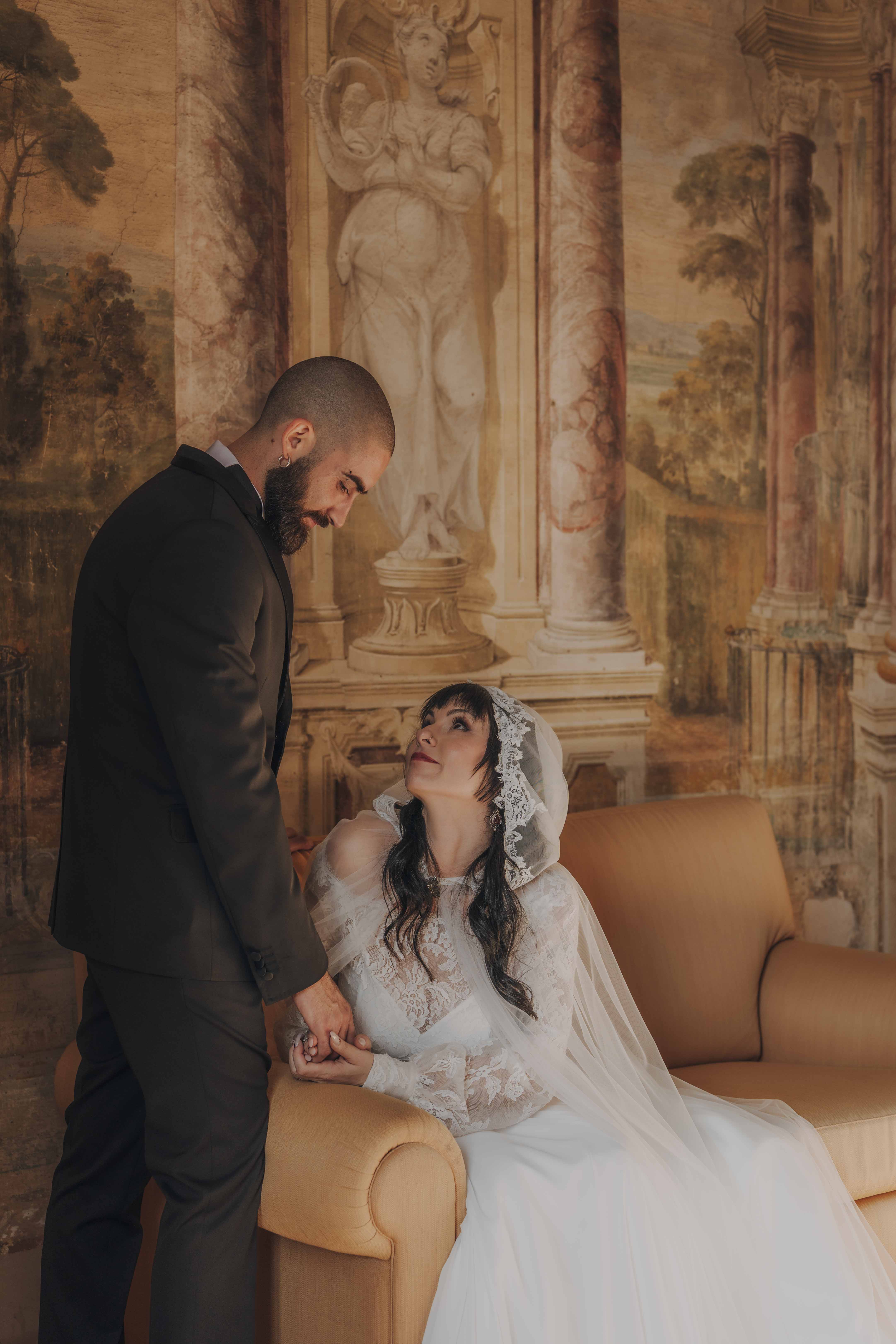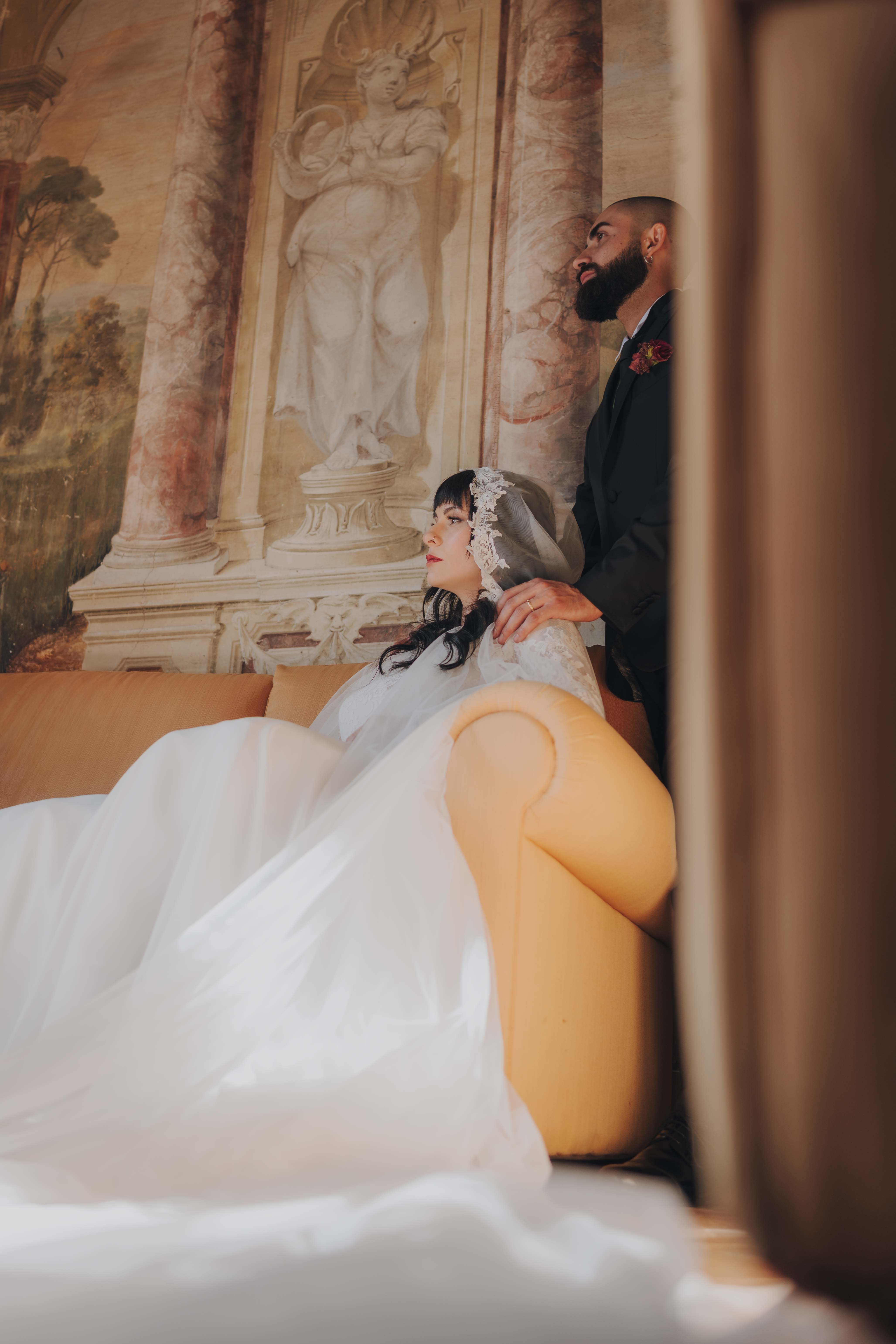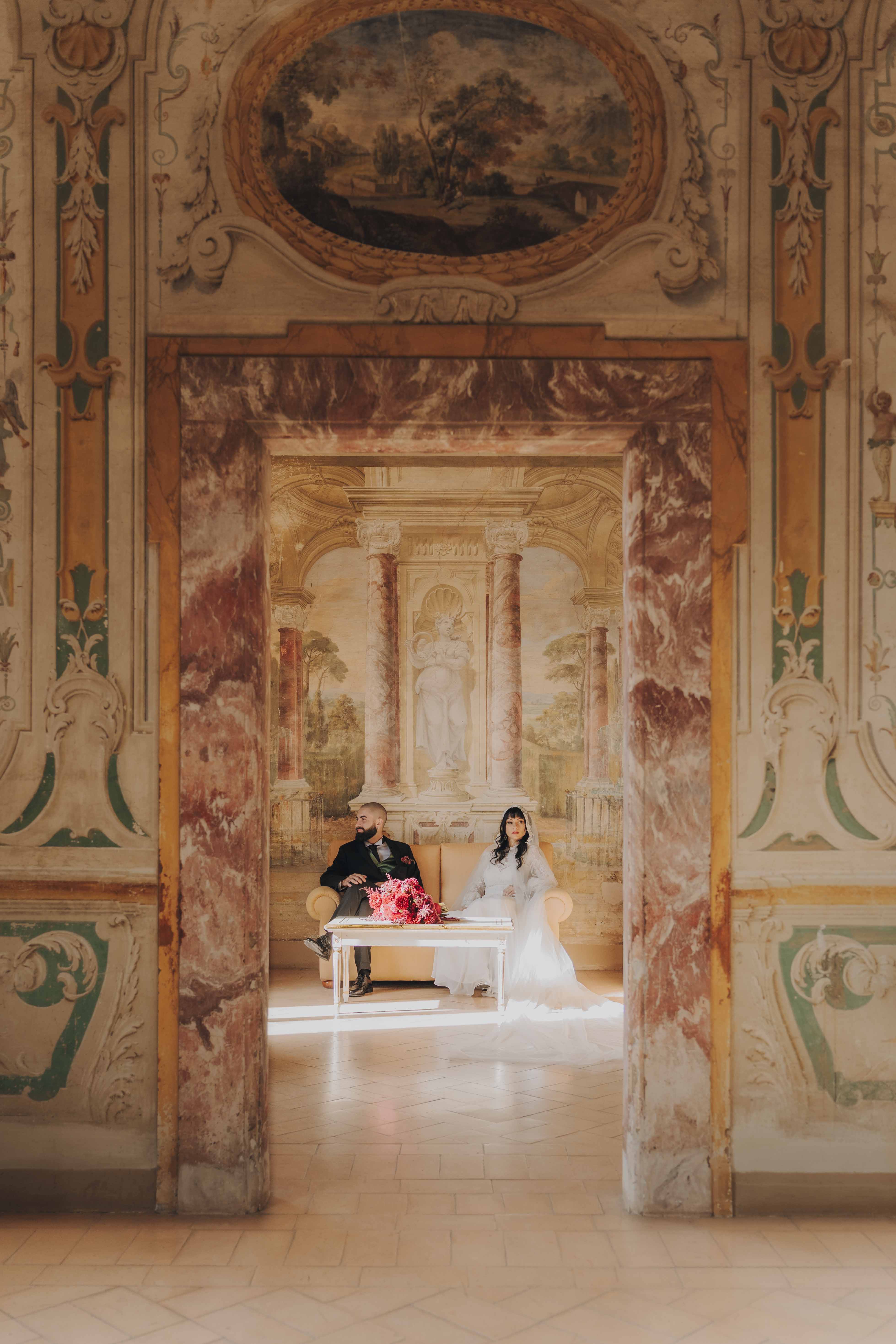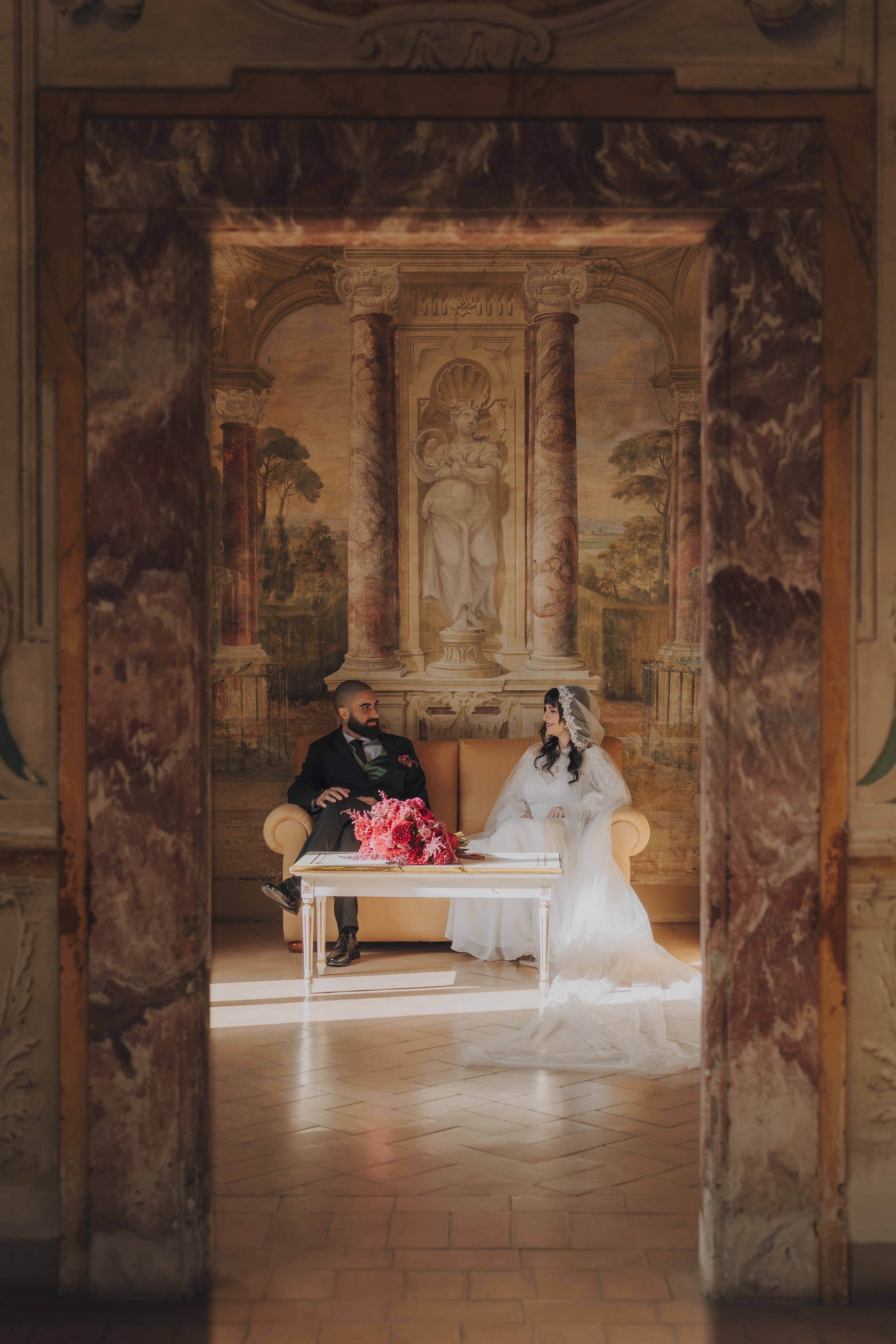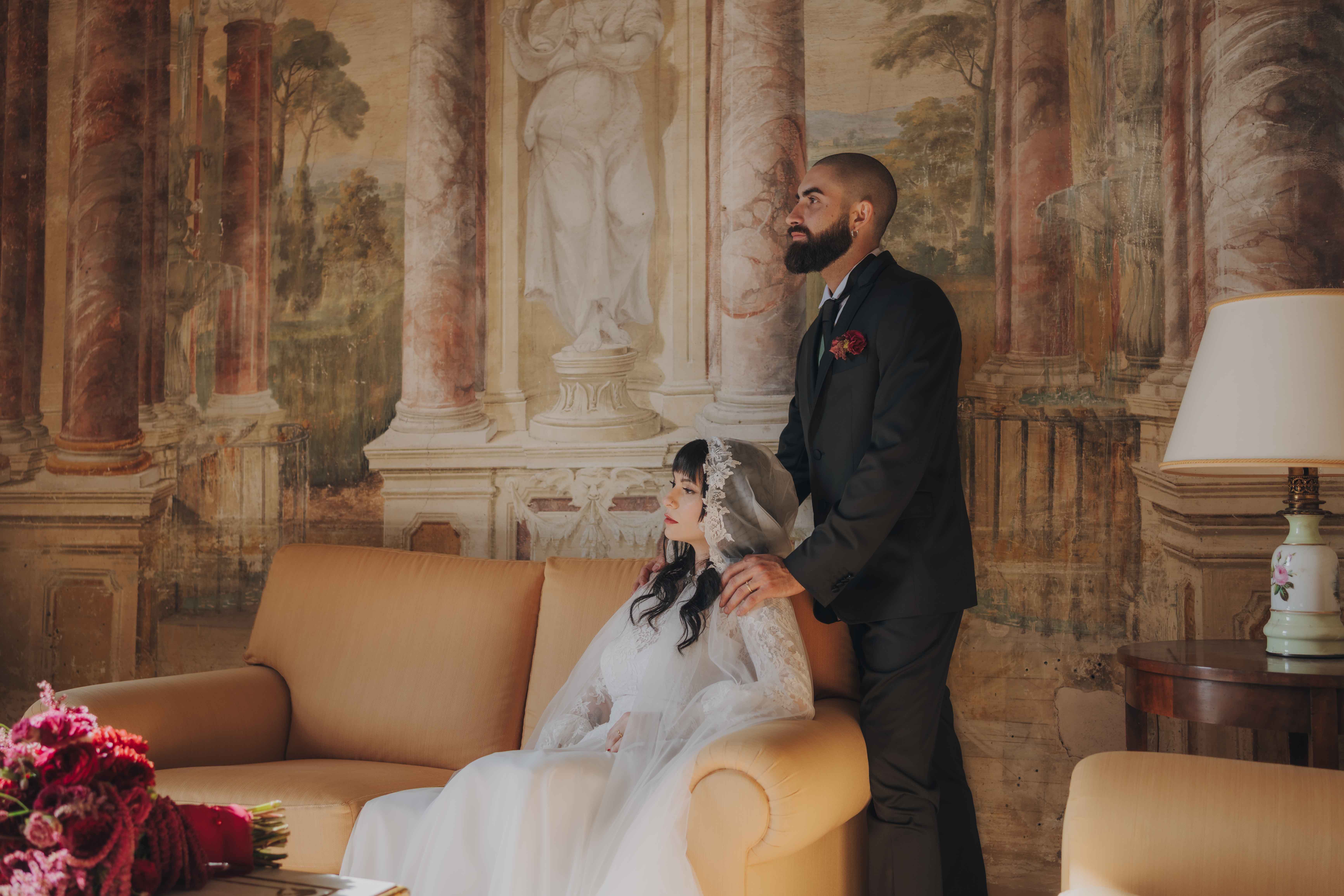 Un matrimonio degno di uno dei più bei romanzi di inizio ‘800. È proprio l’atmosfera che Ludovica e Alessio volevano ricreare per il loro matrimonio, ospitato nella meravigliosa cornice di una villa affrescata tra i Castelli Romani, il Park Hotel Villa Grazioli.