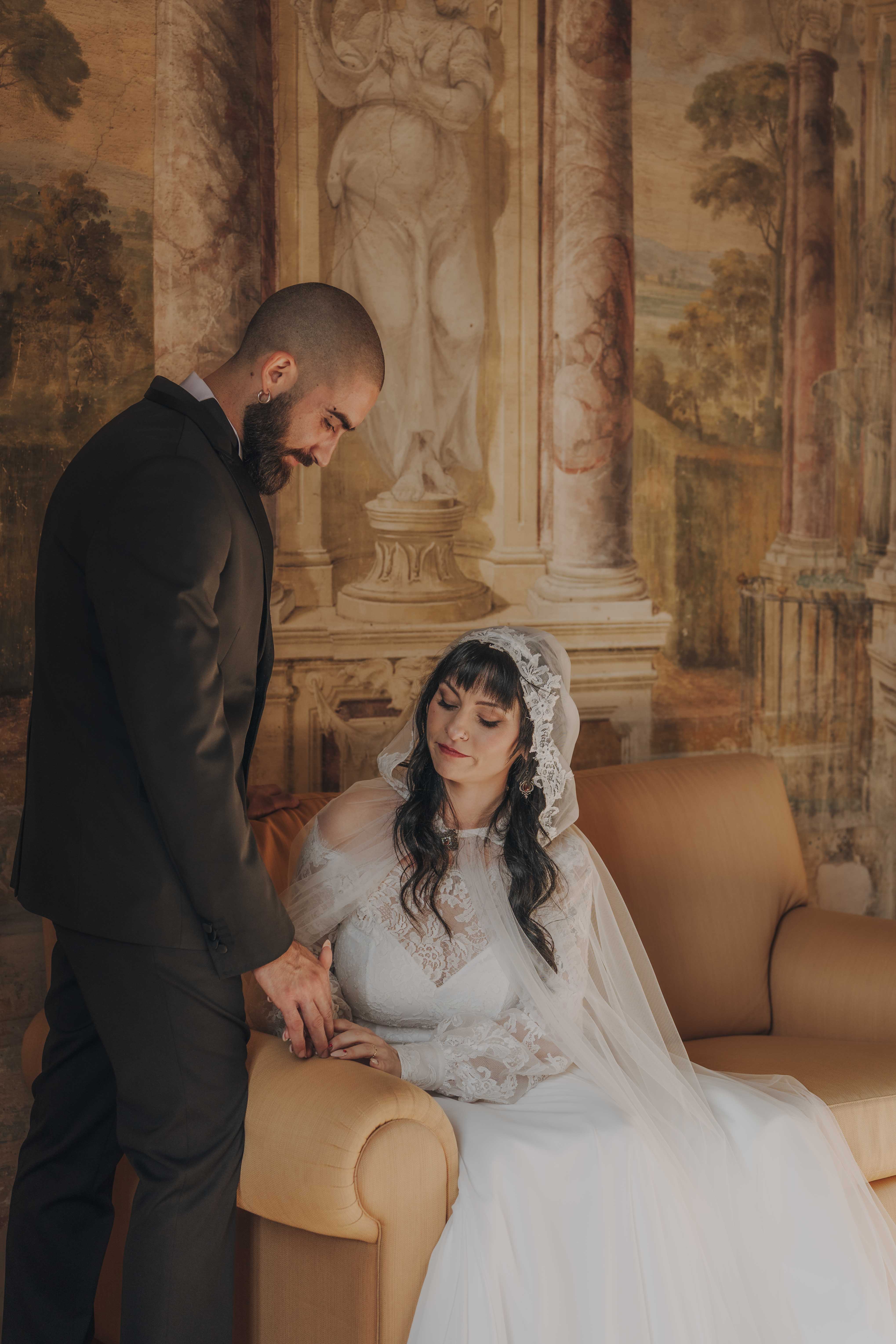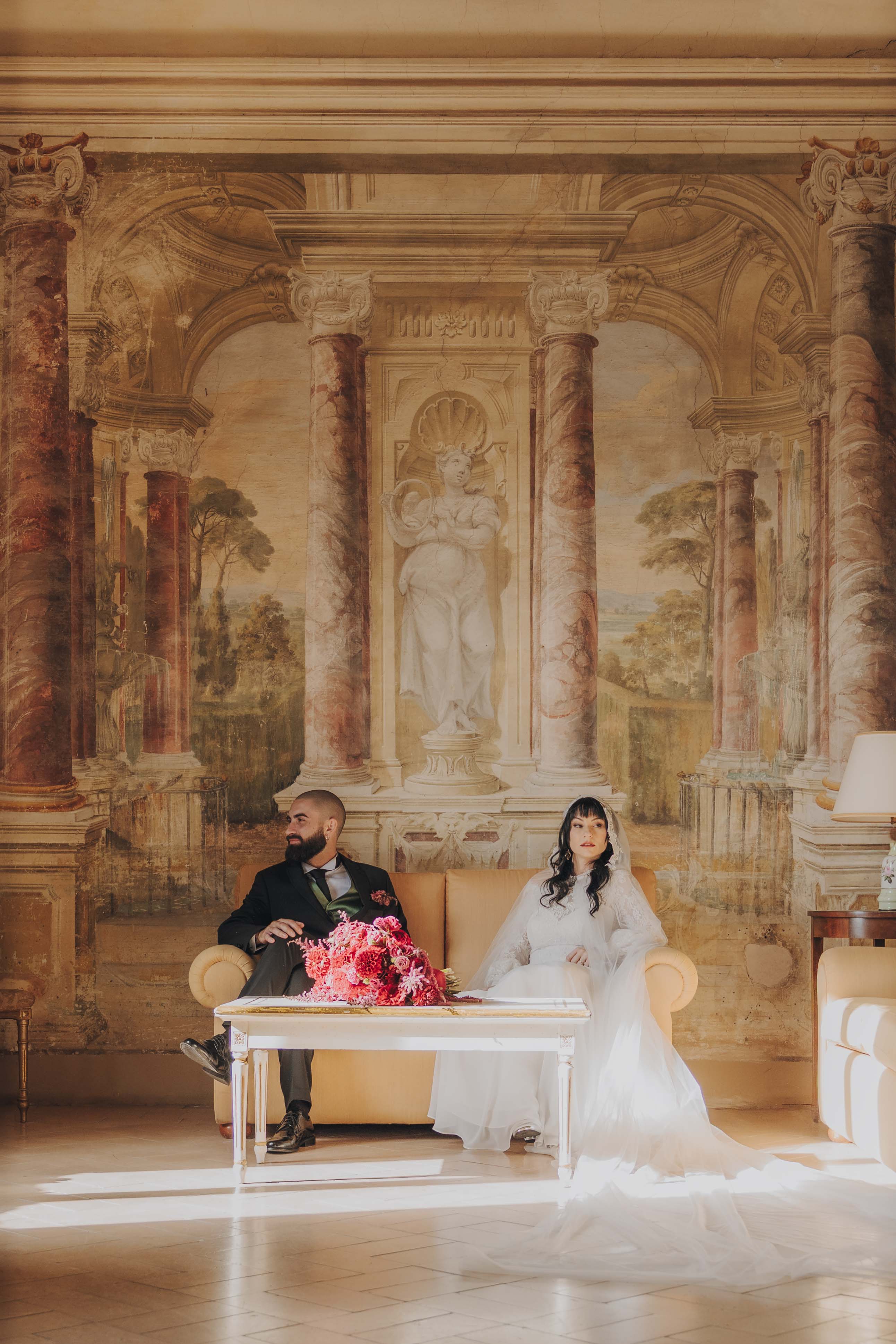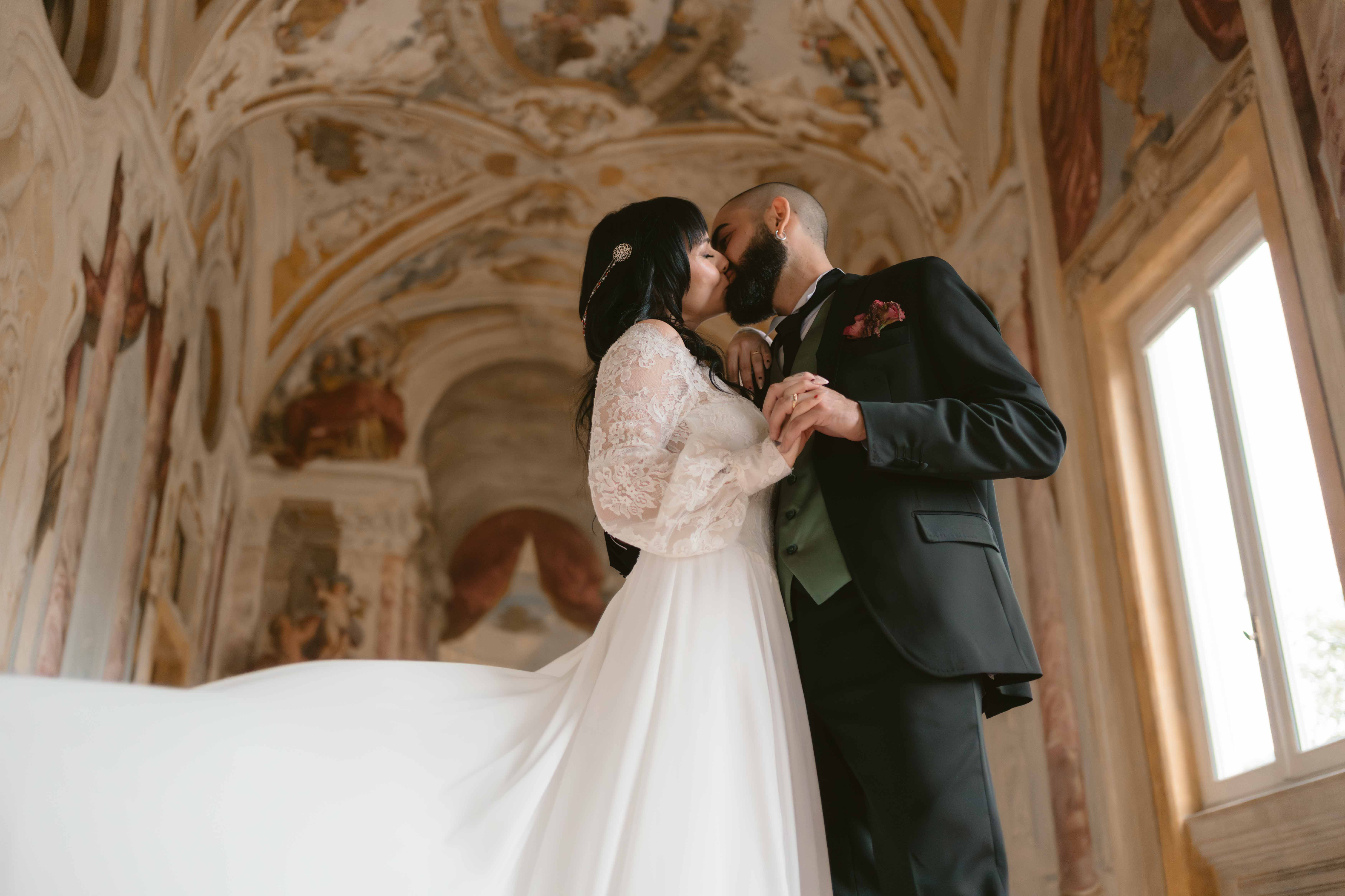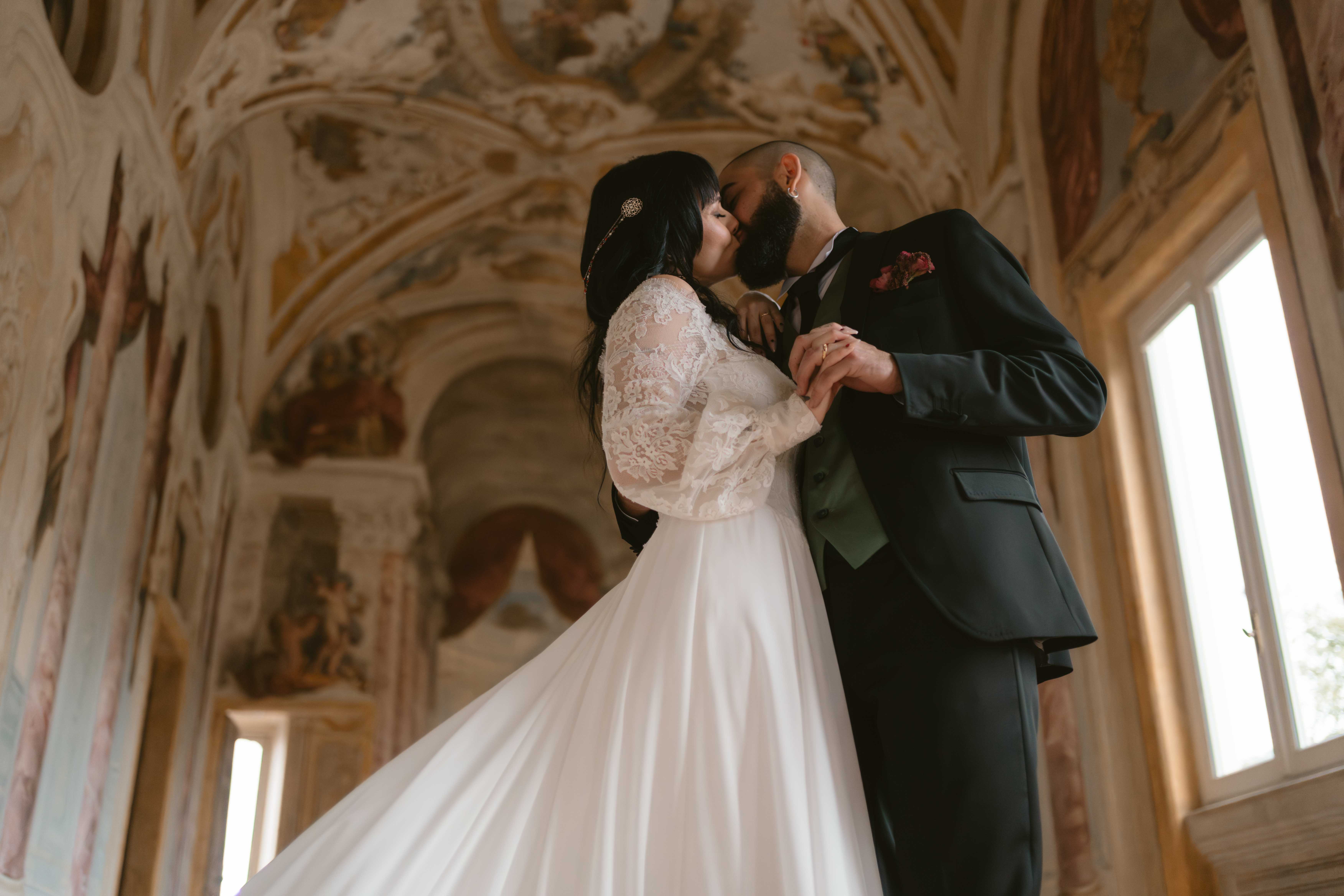 Un matrimonio degno di uno dei più bei romanzi di inizio ‘800. È proprio l’atmosfera che Ludovica e Alessio volevano ricreare per il loro matrimonio, ospitato nella meravigliosa cornice di una villa affrescata tra i Castelli Romani, il Park Hotel Villa Grazioli.