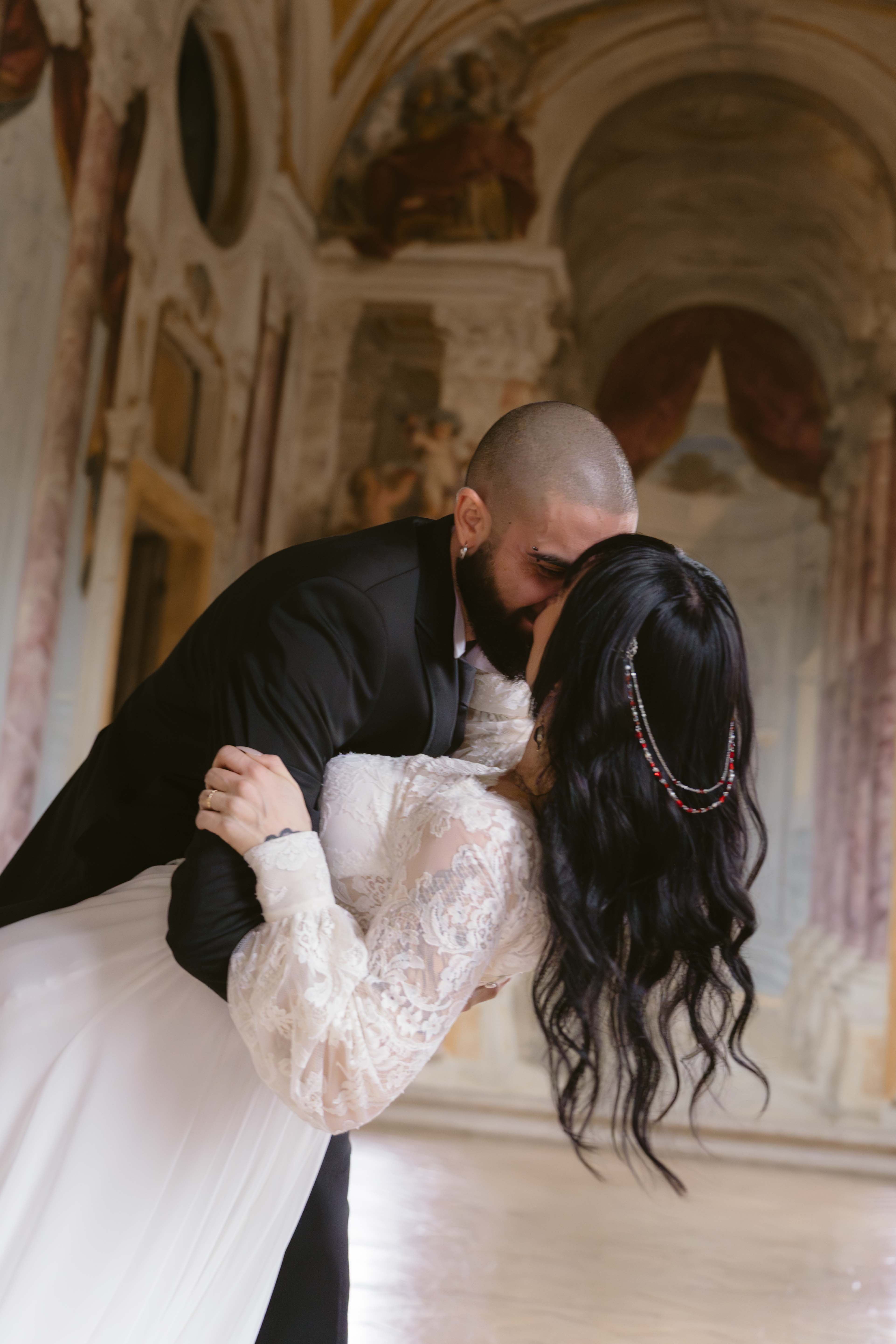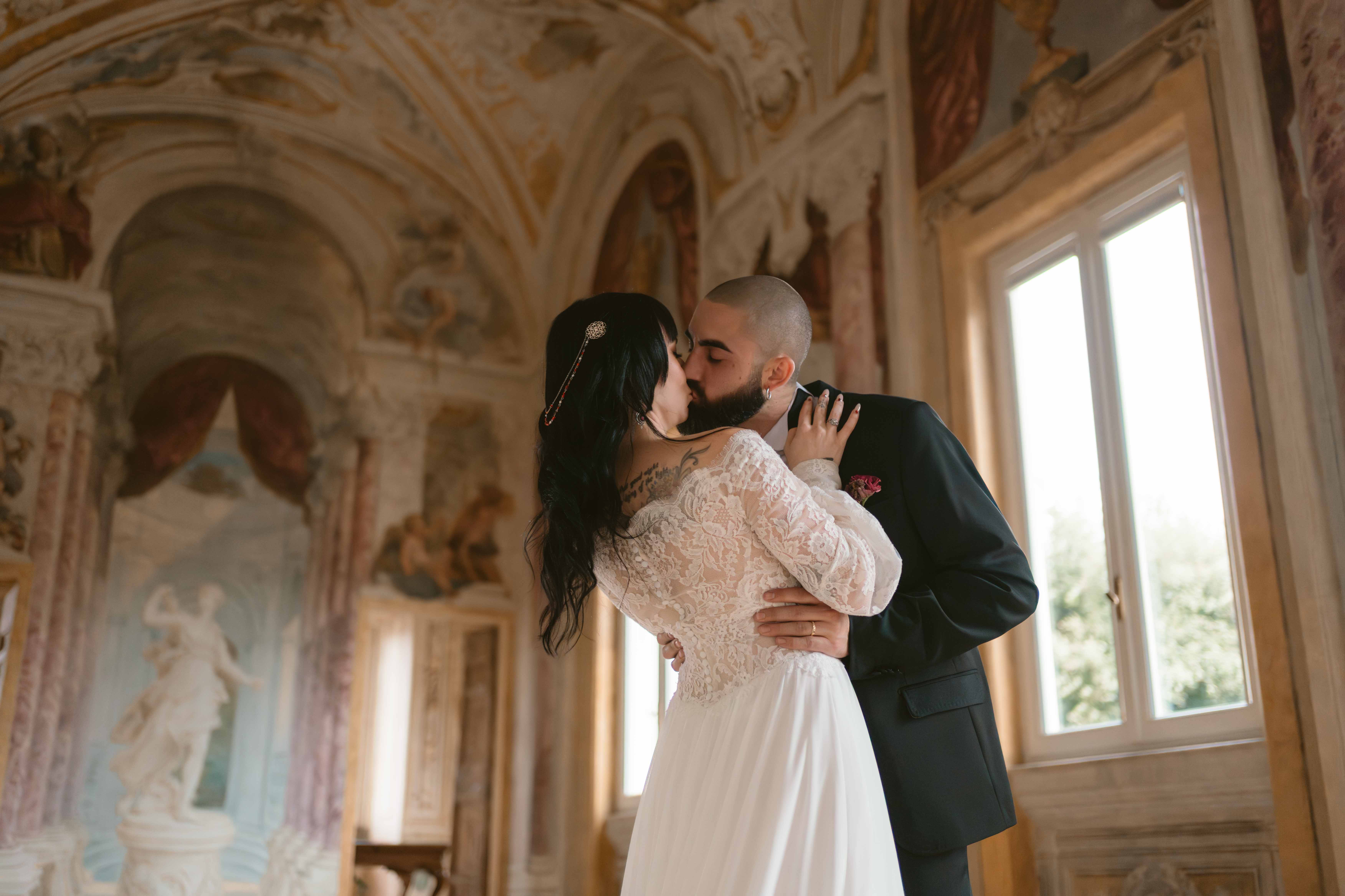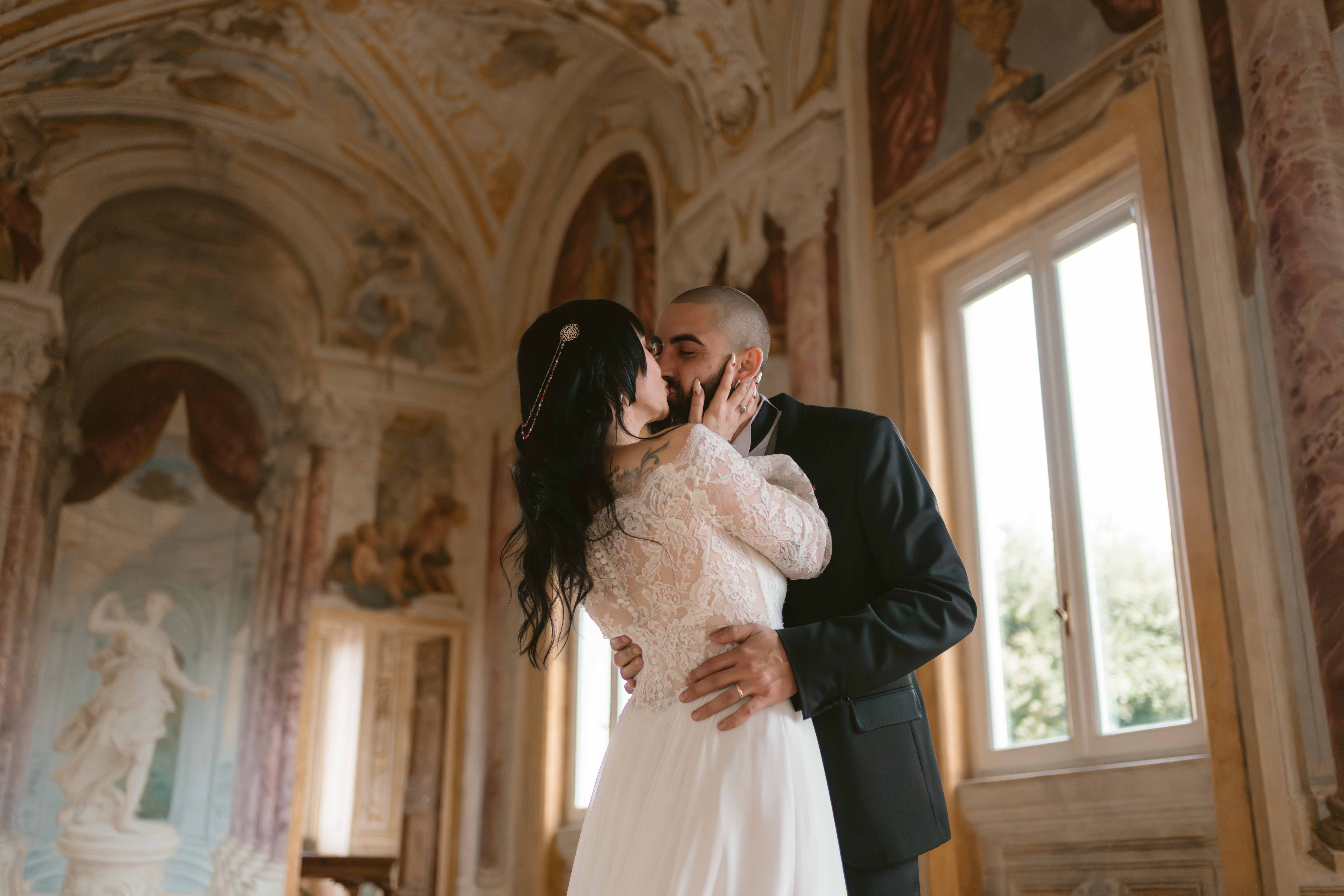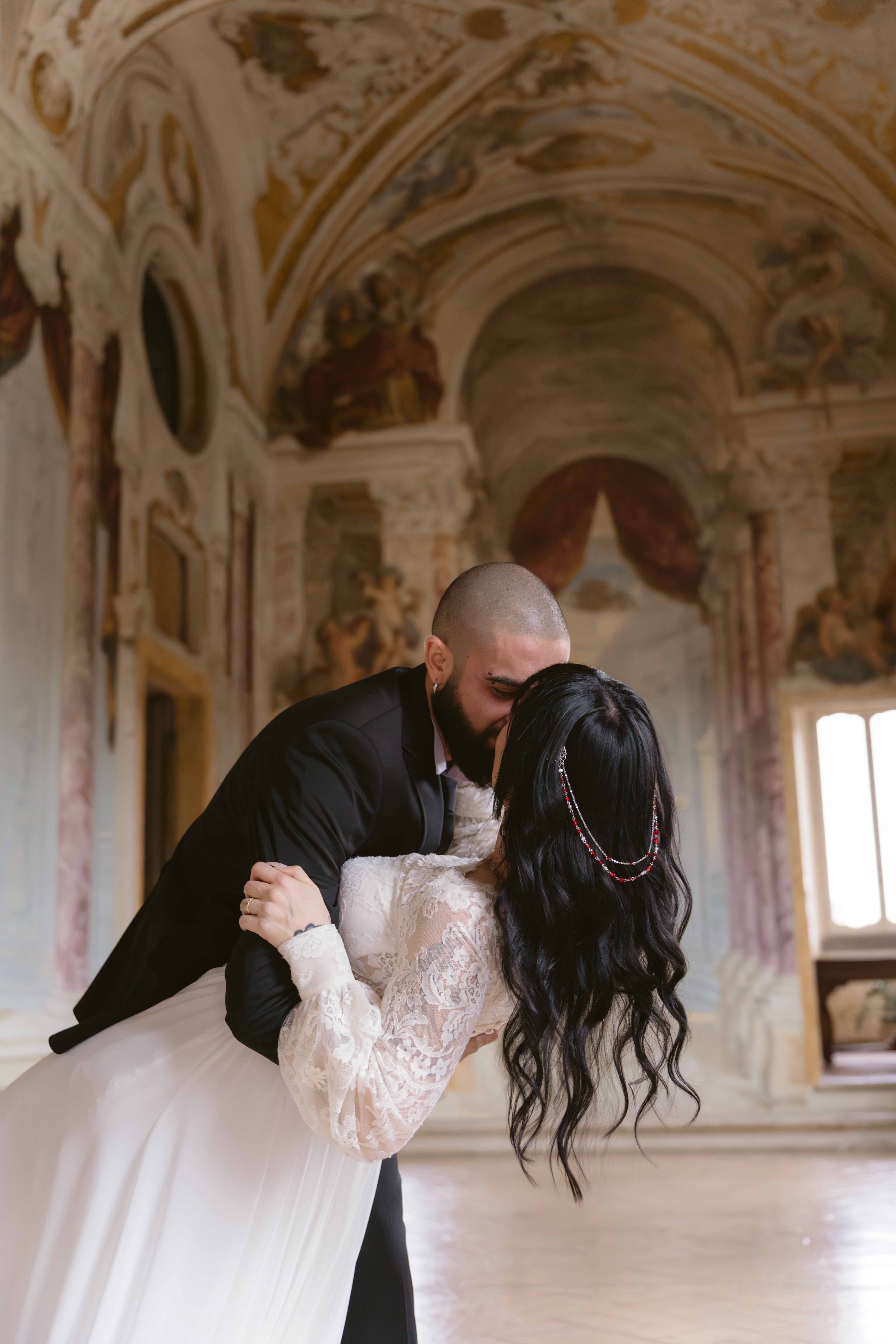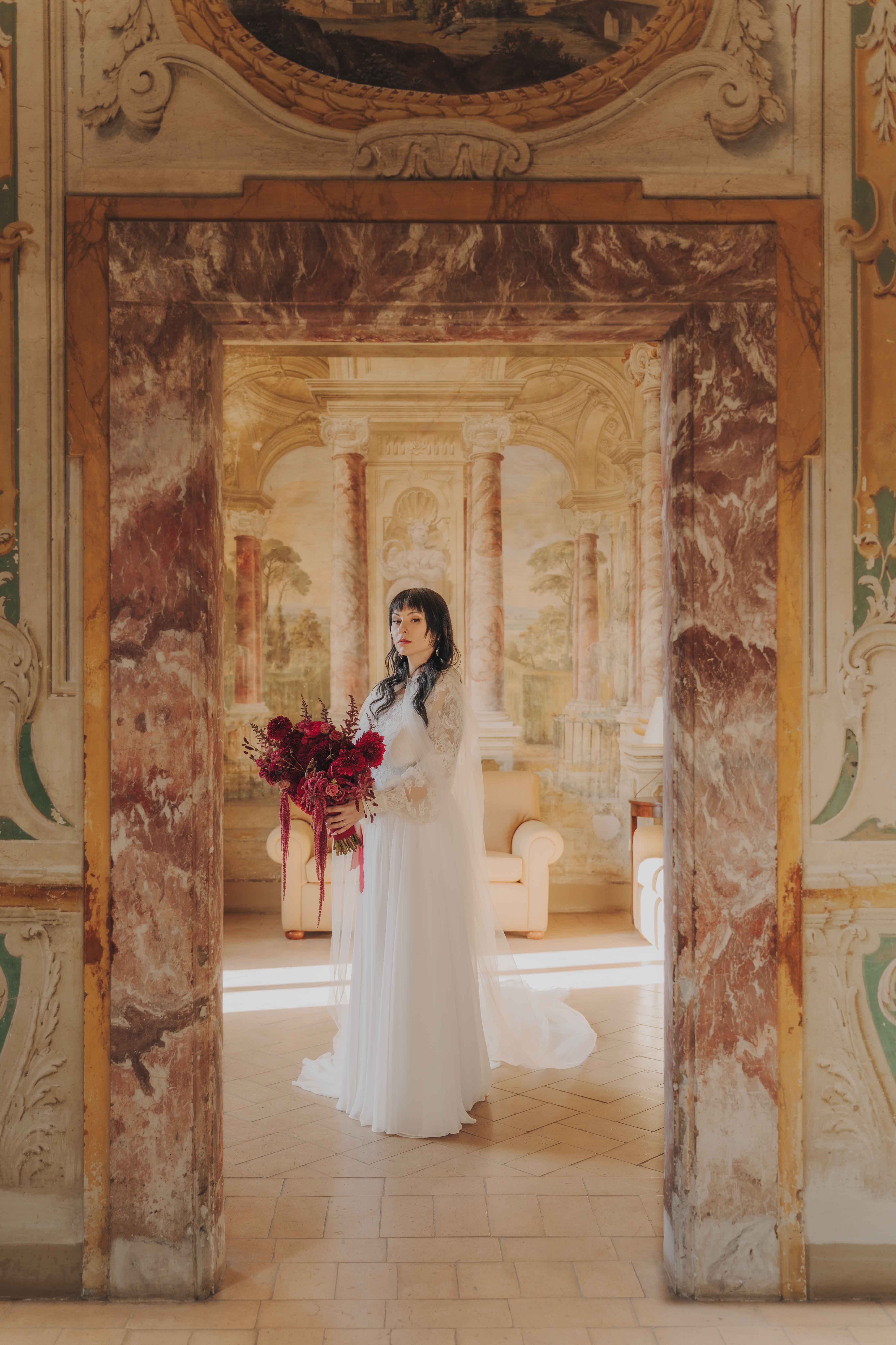 Un matrimonio degno di uno dei più bei romanzi di inizio ‘800. È proprio l’atmosfera che Ludovica e Alessio volevano ricreare per il loro matrimonio, ospitato nella meravigliosa cornice di una villa affrescata tra i Castelli Romani, il Park Hotel Villa Grazioli.