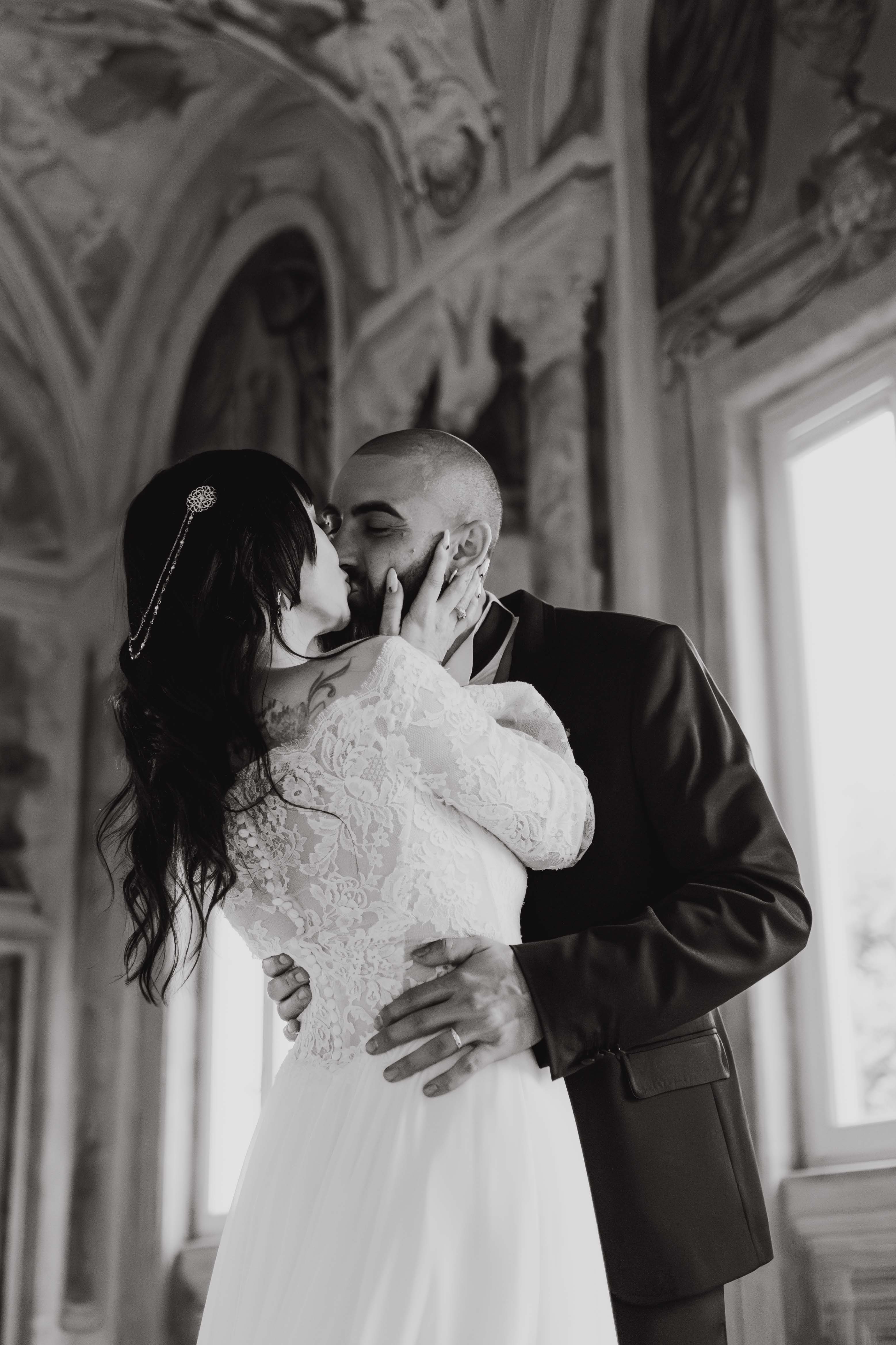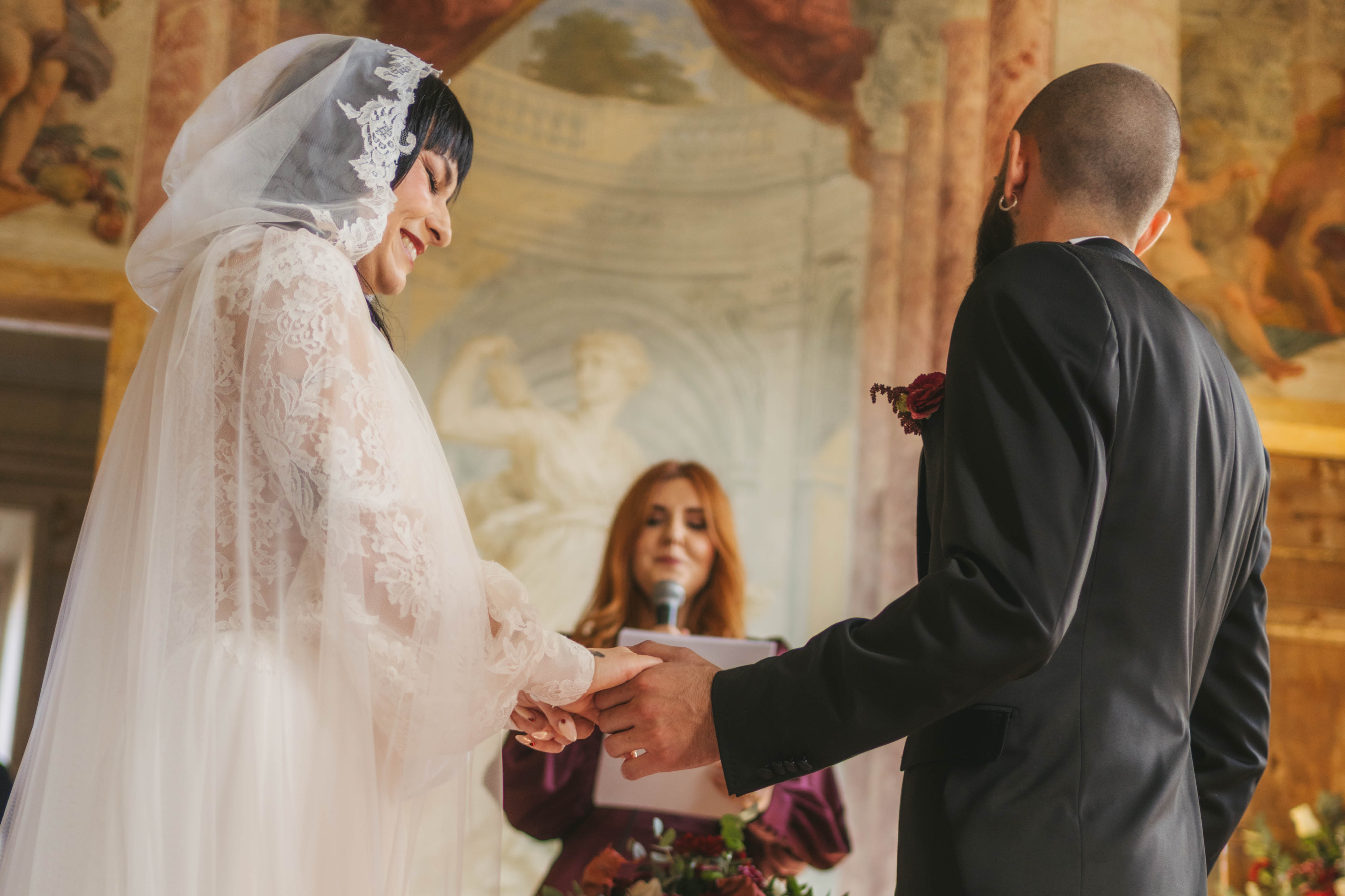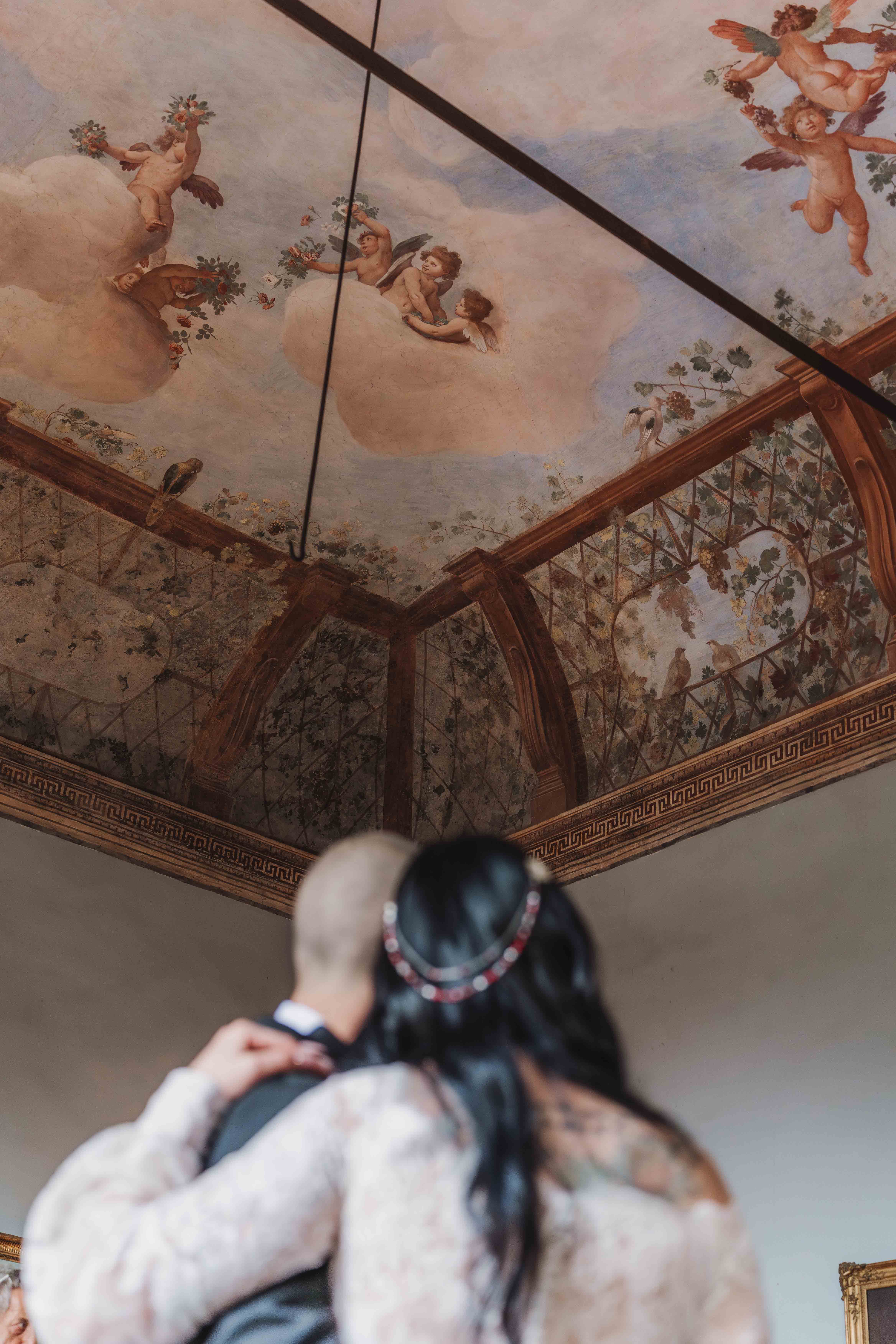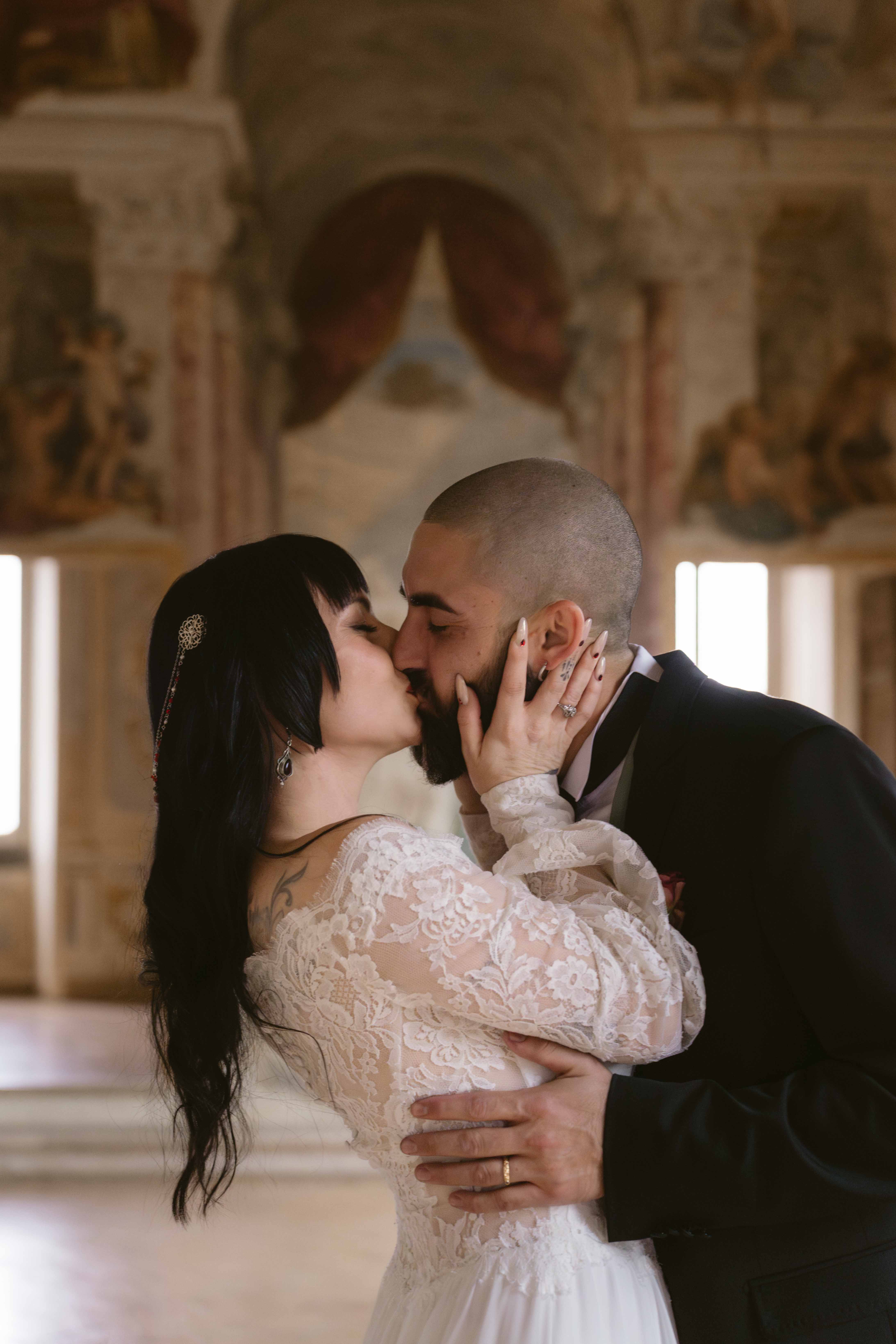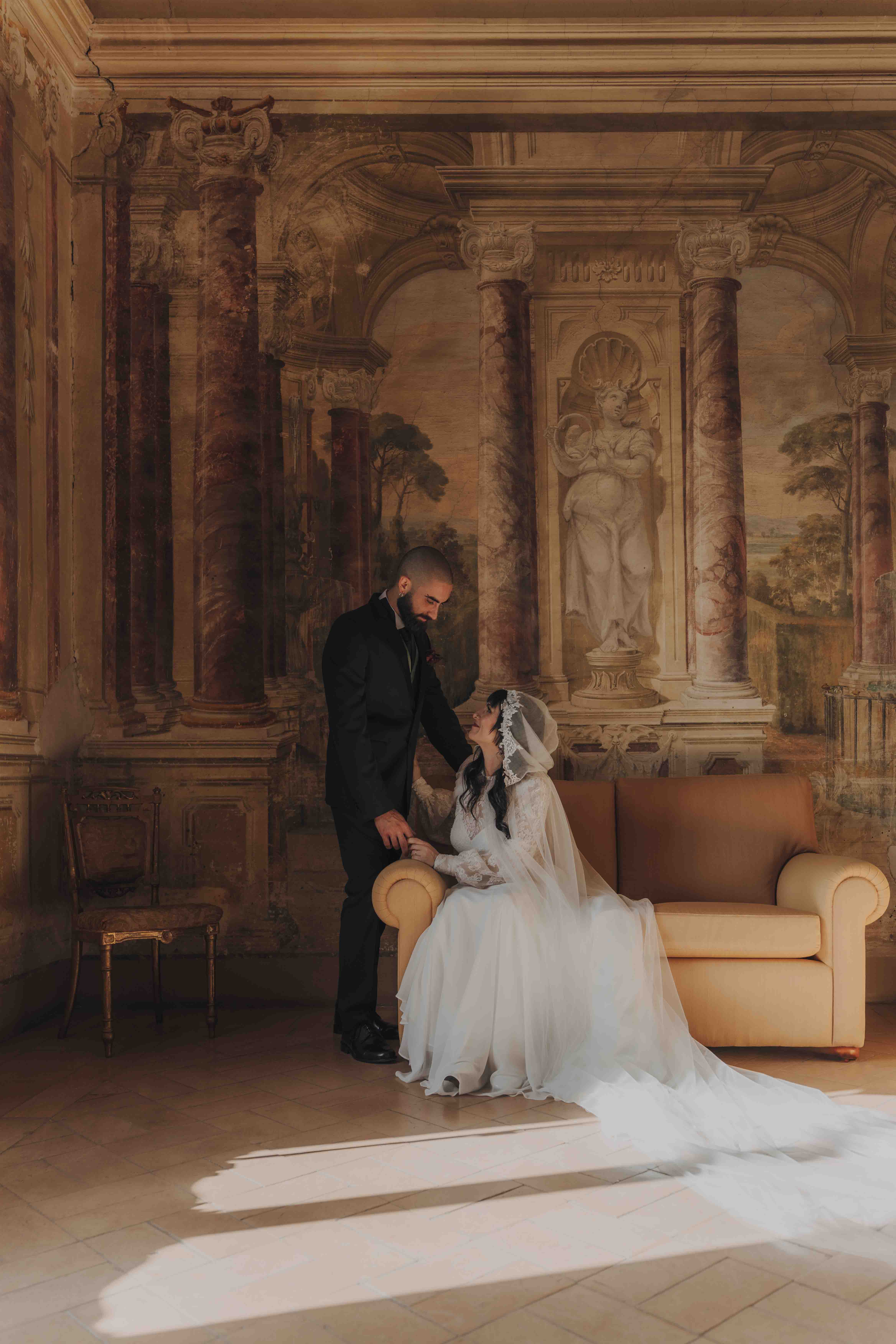 Un matrimonio degno di uno dei più bei romanzi di inizio ‘800. È proprio l’atmosfera che Ludovica e Alessio volevano ricreare per il loro matrimonio, ospitato nella meravigliosa cornice di una villa affrescata tra i Castelli Romani, il Park Hotel Villa Grazioli.