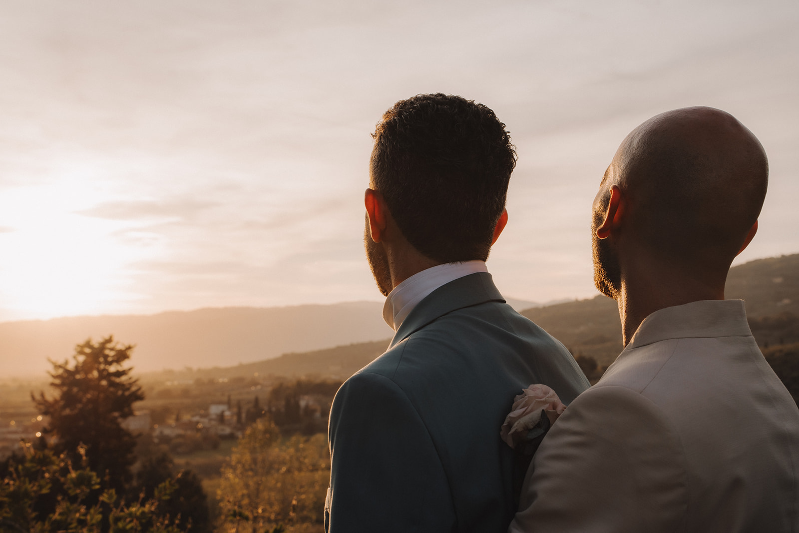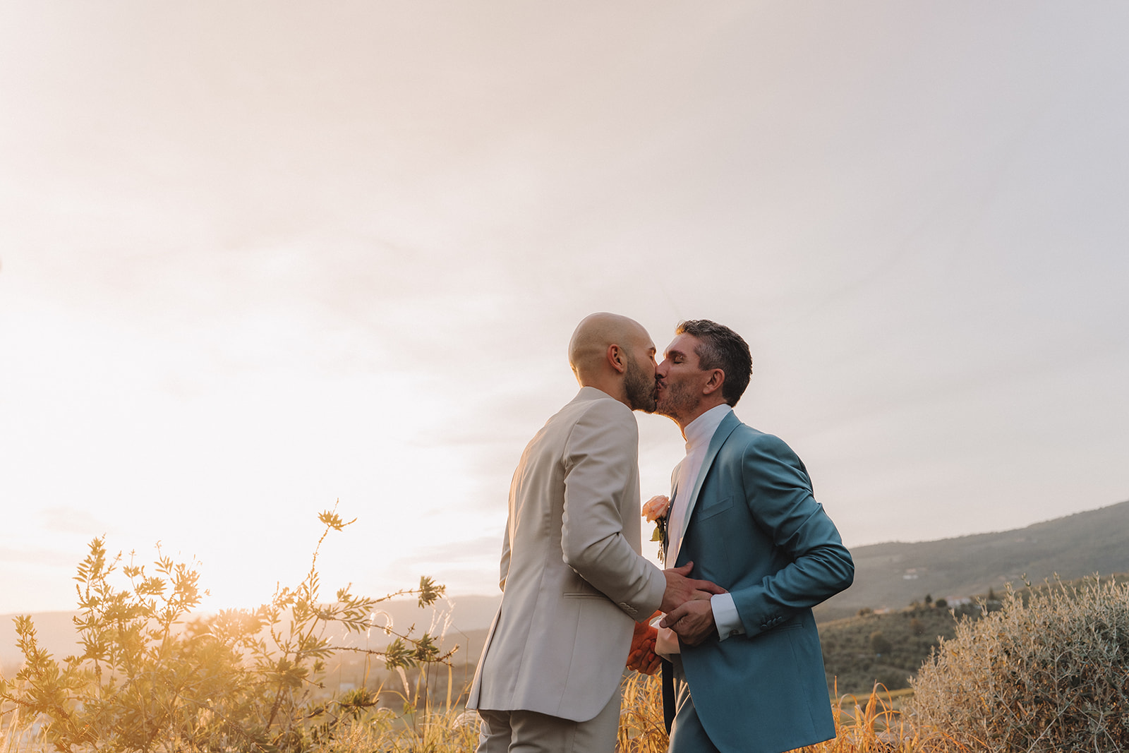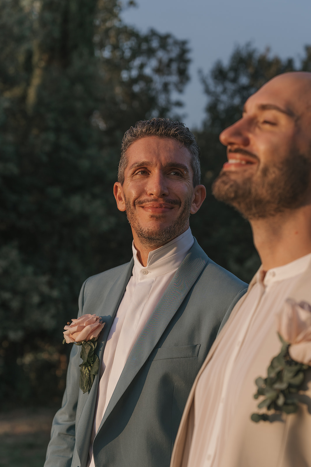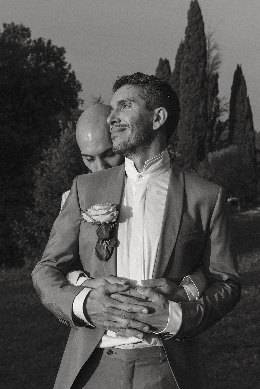 Noi abbiamo seguito la giornata con un approccio da visual narrative: alternanza di establishing shot (per respirare il borgo, le colline, il ritmo toscano) e close-up emotivi, quelli che raccontano l’essenziale—una mano che cerca l’altra, un sorriso trattenuto prima di esplodere, uno sguardo che dice “ci siamo”. Perché in fondo è questo che rende un matrimonio indimenticabile: quando la bellezza del luogo incontra la verità di una storia, e ogni dettaglio—vino, viti, ulivi, luce—diventa linguaggio.