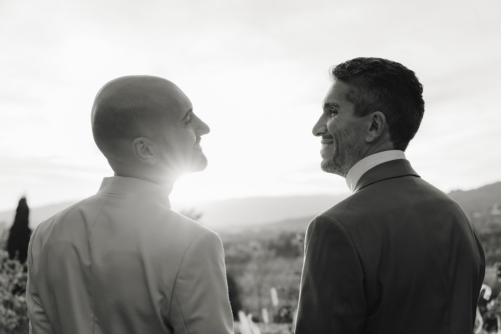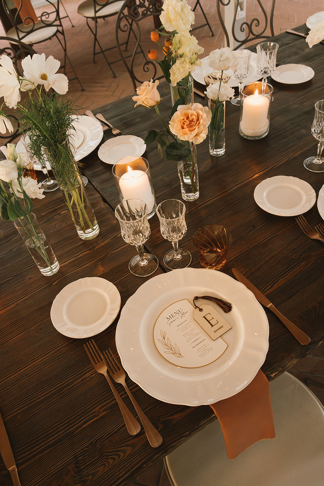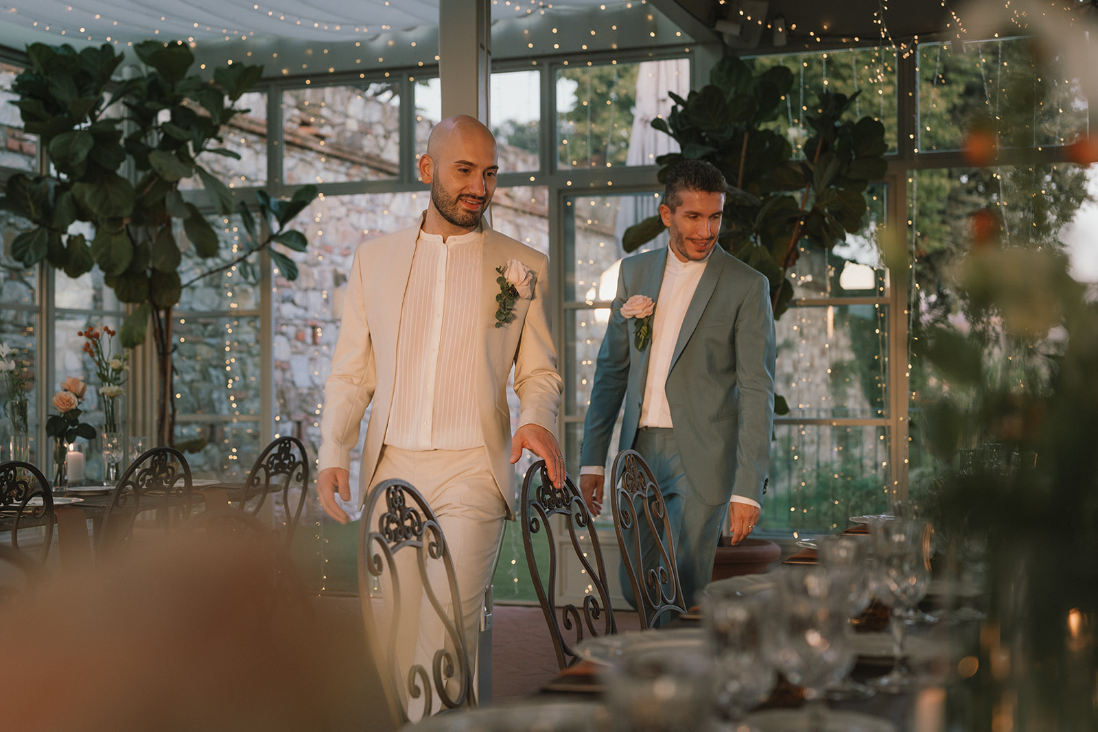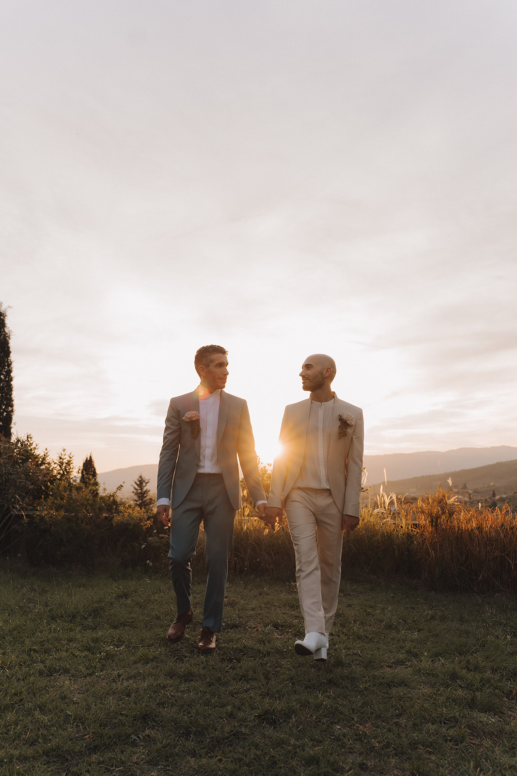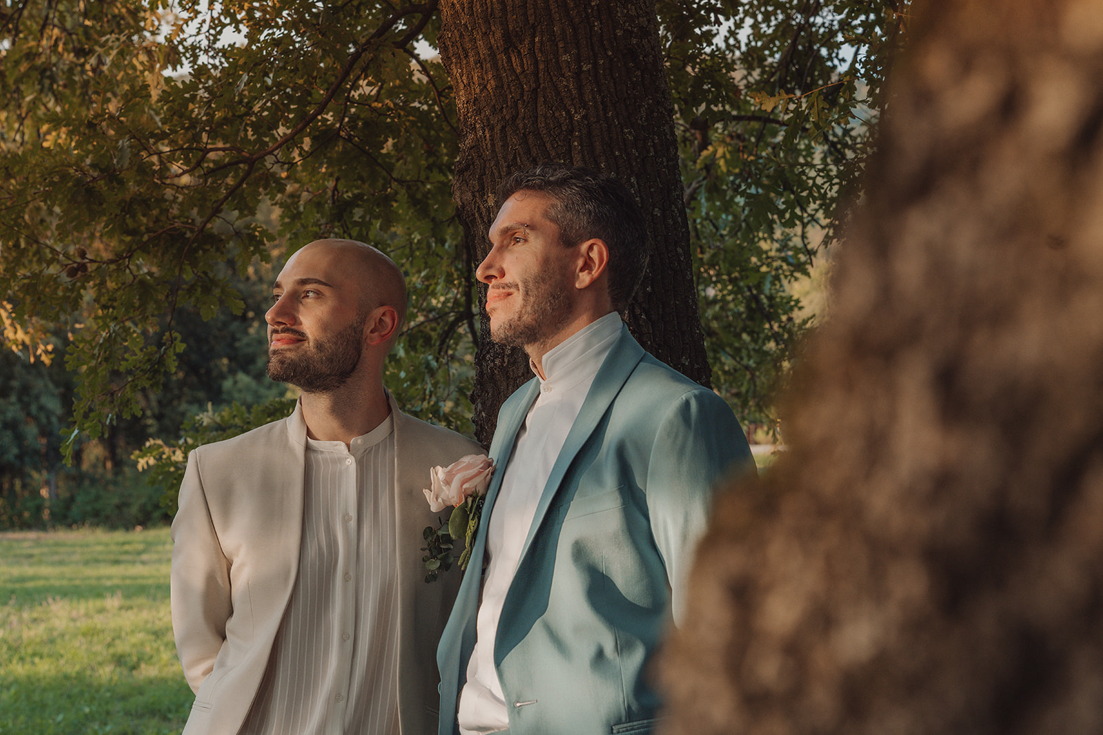 Noi abbiamo seguito la giornata con un approccio da visual narrative: alternanza di establishing shot (per respirare il borgo, le colline, il ritmo toscano) e close-up emotivi, quelli che raccontano l’essenziale—una mano che cerca l’altra, un sorriso trattenuto prima di esplodere, uno sguardo che dice “ci siamo”. Perché in fondo è questo che rende un matrimonio indimenticabile: quando la bellezza del luogo incontra la verità di una storia, e ogni dettaglio—vino, viti, ulivi, luce—diventa linguaggio.