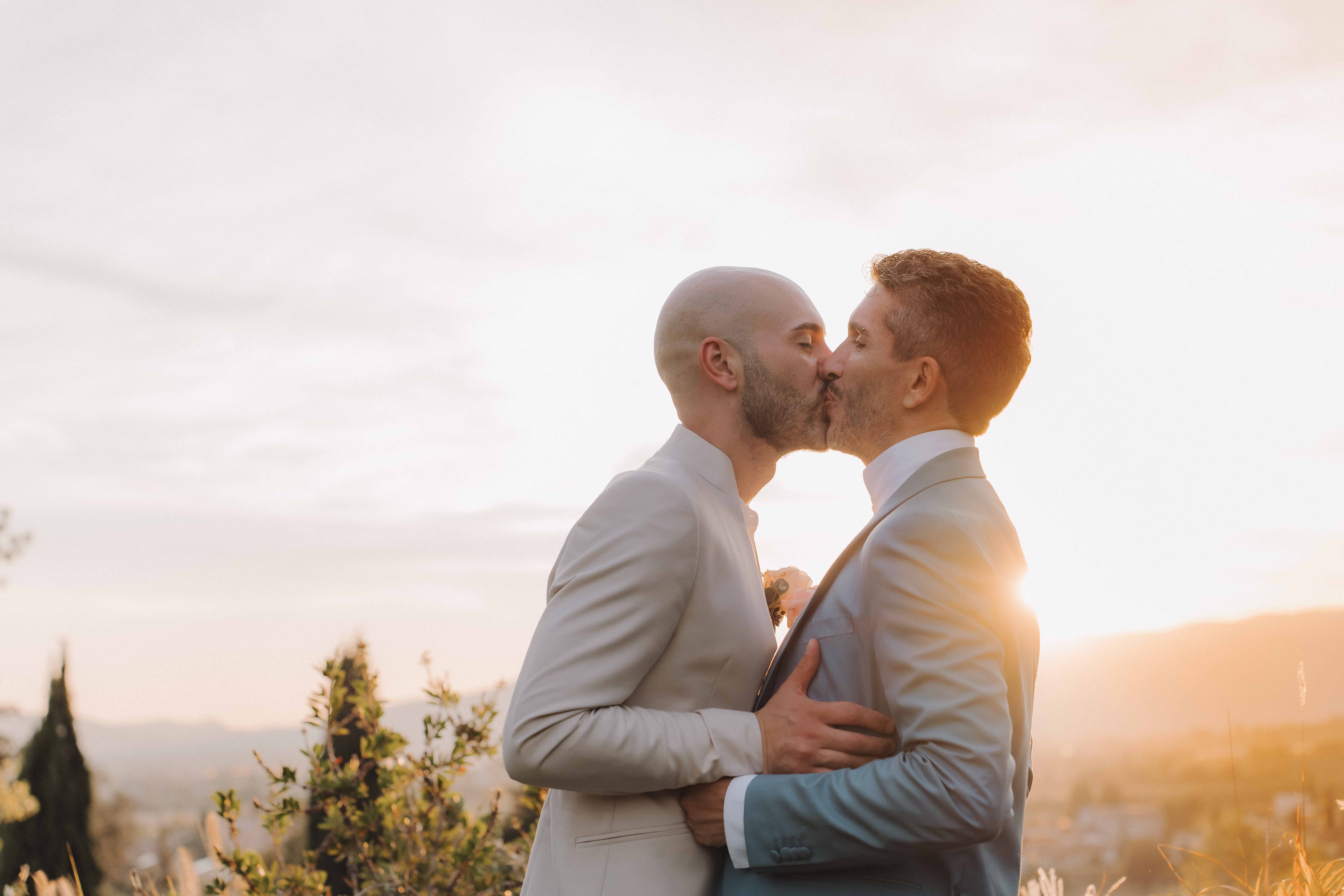 "Mi sei scoppiato dentro al cuore", è sulle note di Mina che Stefano e Simone sono entrati nella cantina per celebrare il loro amore, circondati dalle botti pieni di vino, dai loro più cari amici e dal profumo del mosto. Una coppia che ci è scoppiata dentro al cuore per la bellezza del loro sentimento e la gioia di un ricevimento in mezzo alle colline toscane, circondati da ulivi e viti.